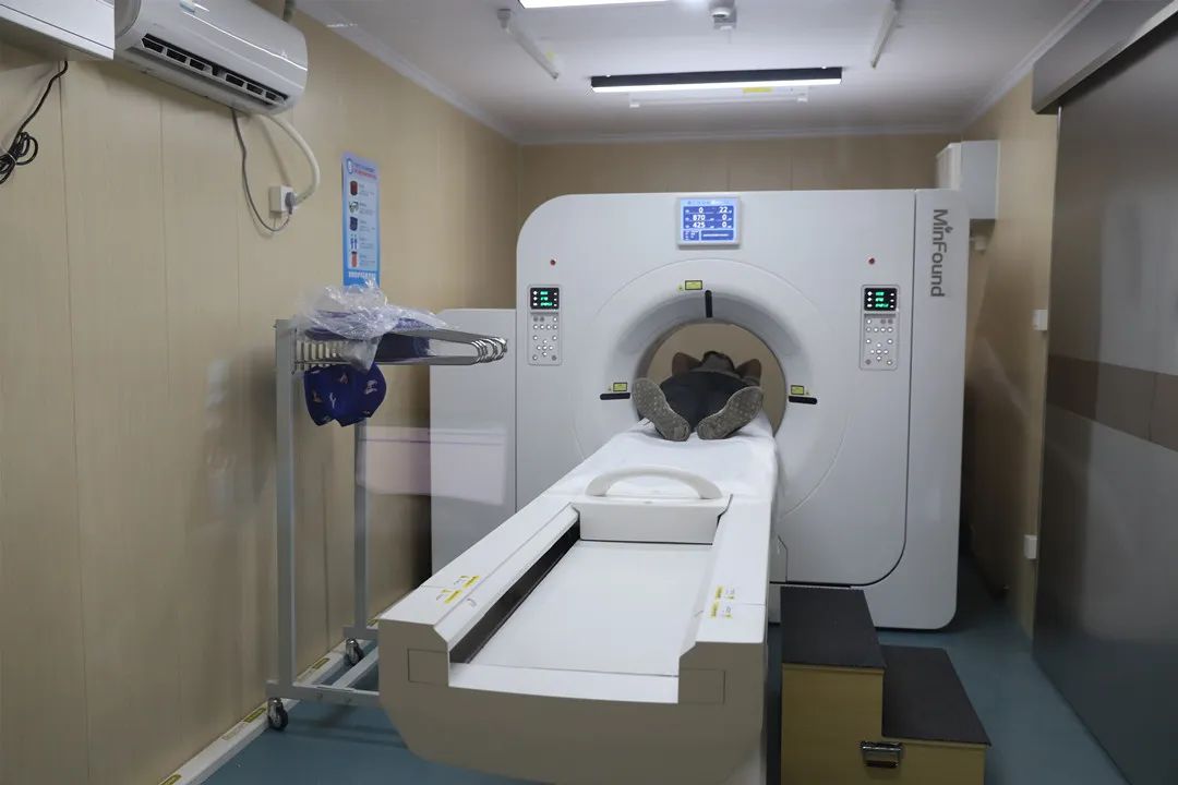 每位阳性患者都需要CT检查,肺CT检查的结果治愈出院前的一项重要指标,在疫情中有不可取代的作用。帮助医生迅速判断患者有无肺部炎症以及其范围和程度等。防范院感风险、提高疫情防控方面发挥重要作用。移动CT车发挥了重要的作用。移动CT车把CT检查设备、独立操作室、独立扫描室、辐射防护、设备可以全隔室操作,保证疑似和发热病人的检查,移动CT车相对于传统的CT,其消毒时间也更短,提高了疾病的诊治效率。又要保证避免交叉感染和防护工作,医患全程无接触,避免交叉感染。通风系统等集中到一辆车上,空间虽然小,影像操作室与检查室之间密闭隔离,检查室和操作室配备了紫外线消毒装置,提升了基层服务疾病筛查能力,将更好地为患者提供更快速及优质的诊疗服务。移动CT车可以做到“一检查、一消毒”,有效避免医患之间交叉感染的情况发生。但是和医院的CT室一样发挥检查作用。